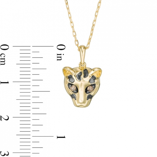1/20 CT. T.W. Champagne Diamond Cheetah Pendant in 10K Gold and Black Rhodium:1/20 CT. T.W. Champagne Diamond Cheetah Pendant in 10K Gold and Black Rhodium