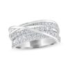 Gorgeous rows of glittering round independently certified diamonds flow atop this ring for her. The ring is crafted in 14K white gold and features intertwined diamond details that make this ring unique and breathtaking with a total diamond weight of 1 carat.