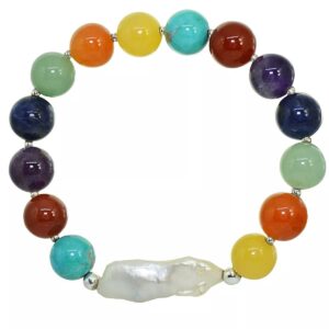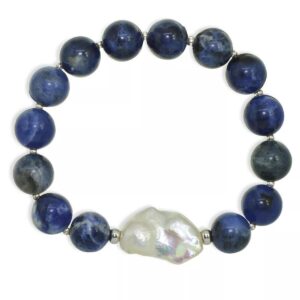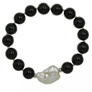 Genuine Stone Bead Biwa Pearl Stretch Bracelet